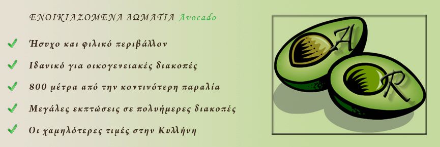 Τα ενοικιαζόμενα δωμάτια Avocado βρίσκονται στην γενέτειρα των ολυμπιακών αγώνων, στο νομό Ηλείας και συγκεκριμένα στην περιοχή της Κυλλήνης.